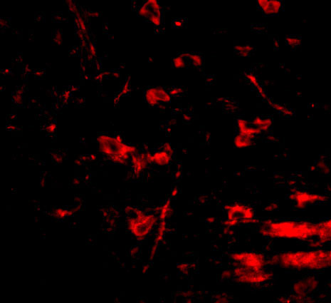 Immunofluorescence of RCAN2 in mouse brain tissue with RCAN2 antibody at 20 μg/mL. |