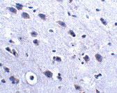 Immunofluorescence of LRFN2 in mouse brain tissue with LRFN2 antibody at 20 μg/mL. |