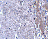 Immunohistochemistry of MATN4 in mouse brain tissue with MATN4 antibody at 2.5 μg/mL.