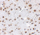 Immunohistochemistry of FTO in mouse brain tissue with FTO antibody at 2.5 μg/mL.