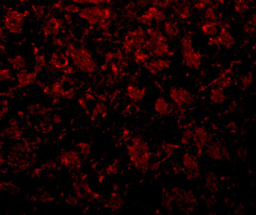 Immunofluorescence of GOLPH2 in rat brain tissue with GOLPH2 antibody at 20 μg/mL. |