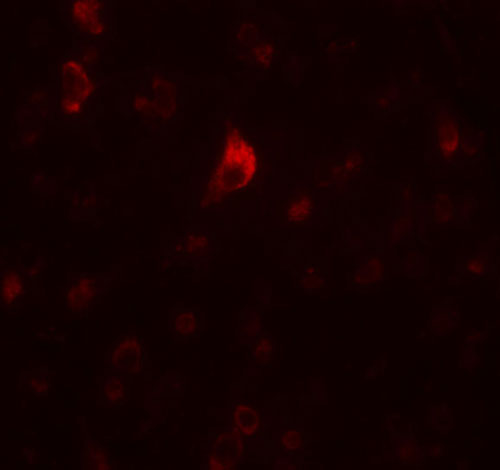 Immunofluorescence of PICALM in human brain tissue with PICALM antibody at 20 μg/mL.