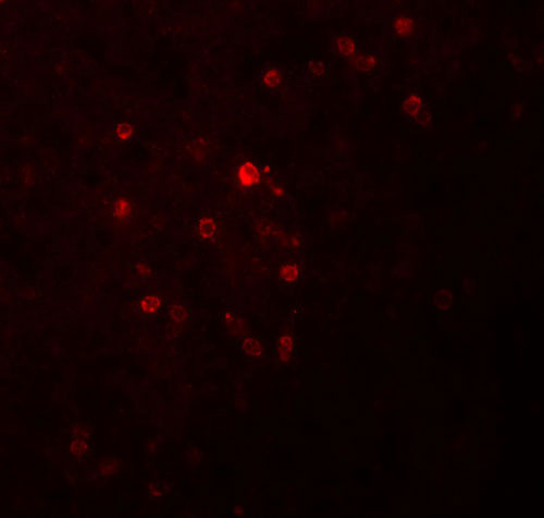 Immunofluorescence of TSPAN9 in human spleen tissue with TSPAN9 antibody at 20 μg/mL. |
