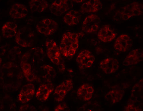 Immunofluorescence of ENC-1 in rat kidney tissue with ENC-1 antibody at 20 μg/mL. |