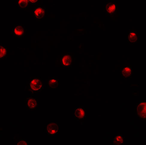 Immunofluorescence of KPNA1 in K562 cells with KPNA1 antibody at 20 μg/mL. |