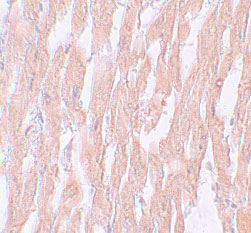 Immunofluorescence of KPNA2 in human heart tissue with KPNA2 antibody at 20 μg/mL. |