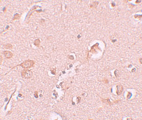 Immunohistochemistry of STAU1 in human brain tissue with STAU1 antibody at 10 μg/mL.