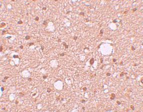 Immunofluorescence of APBA2 in human brain tissue with APBA2 antibody at 20 μg/mL. |