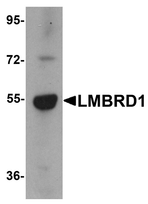 LMBRD1 Antibody: LMBRD1, also known as NESI (nuclear export signal-interacting protein, is a lysosomal membrane protein that is thought be involved in the transport and metabolism of cobalamin. LMBRD1 was initially identified as interacting with the large form of the hepatitis delta antigen and may be required for the nucleocytoplasmic shuttling of the hepatitis delta virus. Mutations in this gene are associated with the vitamin B12 metabolism disorder termed, homocystinuria-megaloblastic anemia complementation type F (cblF).