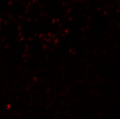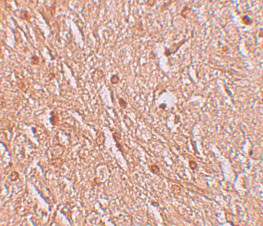 Immunofluorescence of LMBRD1 in human brain tissue with LMBRD1 antibody at 20 μg/mL. |