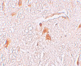 Immunofluorescence of SHISA9 in human brain tissue with SHISA9 antibody at 20 μg/mL. |