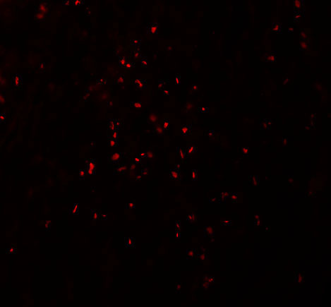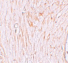 Immunofluorescence of ZBTB7A in human ovary tissue with ZBTB7A antibody at 20 μg/mL. |