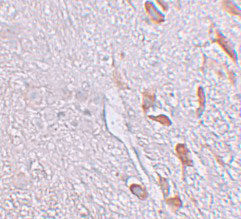 Immunofluorescence of LRRTM1 in human brain tissue with LRRTM1 antibody at 20 μg/mL. |