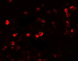 Immunofluorescence of OGFOD1 in Daudi cells with OGFOD1 antibody at 20 μg/mL. |