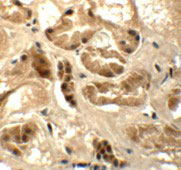 Immunohistochemistry of ATAD3B in human kidney tissue with ATAD3B antibody at 5 μg/mL. |