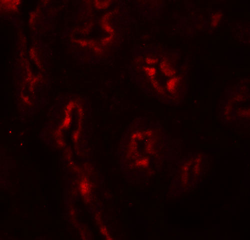 Immunofluorescence of AP3S1 in human kidney tissue with AP3S1 antibody at 20 μg/mL. |