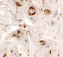 Immunofluorescence of UPK1B in human bladder muscle tissue with UPK1B antibody at 20 μg/mL. |