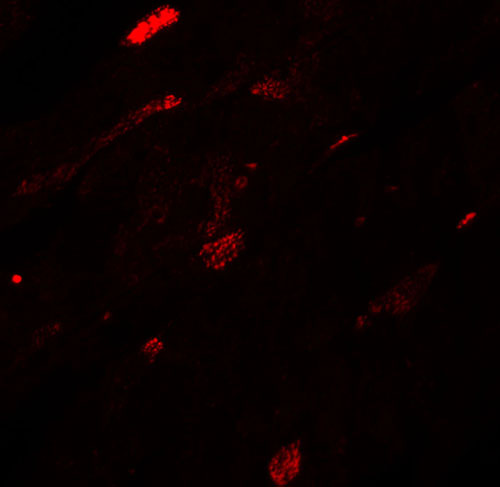 Immunofluorescence of TGM5 in mouse heart tissue with TGM5 antibody at 20 μg/mL. |