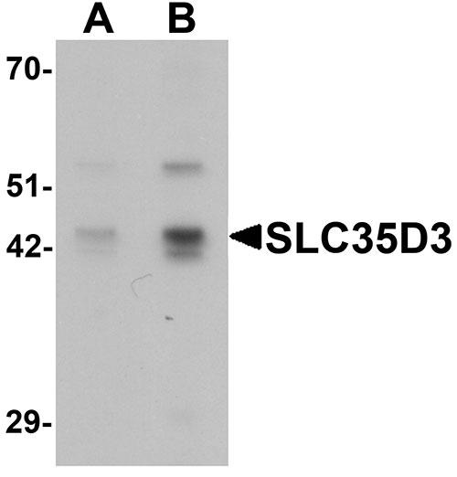 SLC35D3; At least two isoforms of SLC35D3 are known to exist; this antibody will recognize both isoforms. SLC35D3 antibody is predicted to not cross-react with SLC35D1 or SLC35D2.