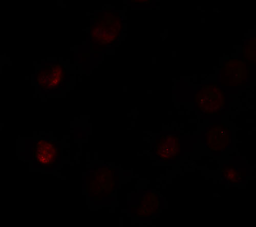 Immunofluorescence of SLC35D3 in HeLa cells with SLC35D3 antibody at 5 μg/mL. |