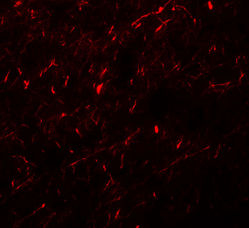 Immunofluorescence of APBA1 in human brain tissue with APBA1 antibody at 20 μg/mL. |