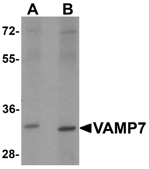 VAMP7 Antibody: VAMP7 is a member of the soluble N-ethylmaleimide-sensitive factor attachment protein receptor (SNARE) family, localizing to late endosomes and lysosomes. VAMP7 is thought to mediate the fusion of endosomes to their target lysosomes as well as other exocytosis events during phagocytosis and neuritogenesis. VAMP7 interacts with the VPS9 ankyrin repeat protein VARP, a protein that localizes to early endosomes and thought to regulate endosome dynamics. Together with CD82, VAMP7 can modulate the signaling of EGFR by regulating its endocytosis from the plasma membrane.