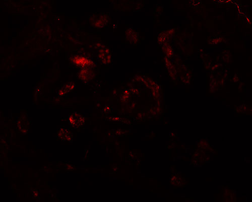 Immunofluorescence of VAMP7 in human lung tissue with VAMP7 antibody at 20 μg/mL. |