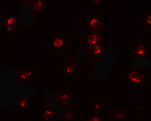 Immunofluorescence of TCTEX1D2 in K562 cells with TCTEX1D2 antibody at 20 μg/mL. |