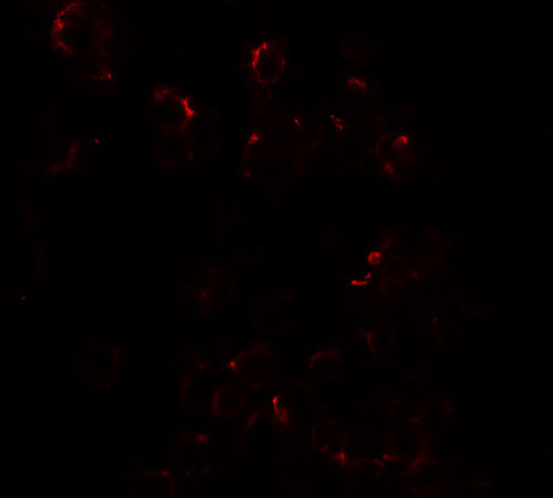Immunofluorescence of DLK1 in HepG2 cells with DLK1 antibody at 20 μg/ml. |
