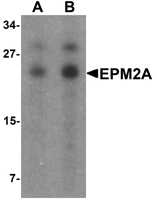 EPM2A; At least four isoforms of EPM2A are known to exist; this antibody will detect all but the shortest isoform.