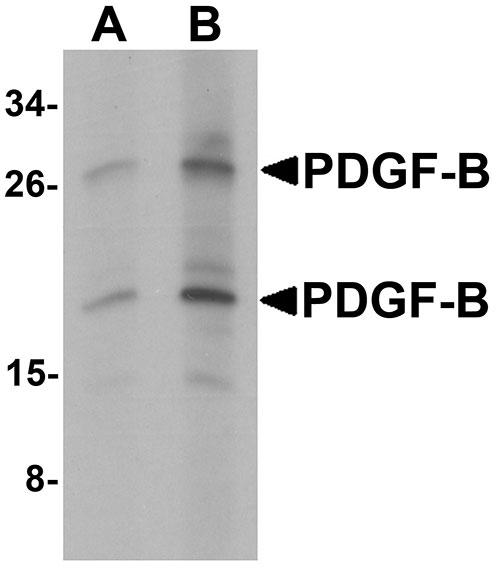 PDGF-B Antibody: The platelet-derived growth factor beta (PDGF-B) is a member of the platelet-derived growth factor family. The four members of this family are mitogenic factors for cells of mesenchymal origin and are characterized by a motif of eight cysteines. This gene product can exist either as a homodimer (PDGF-BB) or as a heterodimer with the platelet-derived growth factor alpha polypeptide (PDGF-AB). Mutations in this gene are associated with meningioma , and reciprocal translocations between chromosomes 22 and 7, at sites where the PDGF-B gene and that for COL1A1 are located, are associated with a particular type of skin tumor called dermatofibrosarcoma protuberans.