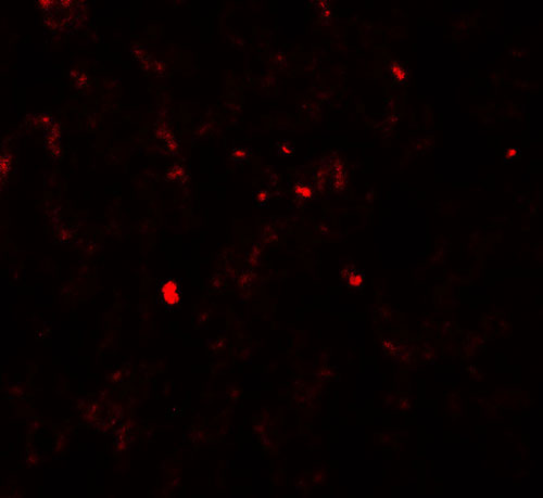 Immunofluorescence of PDGF-B in human liver tissue with PDGF-B antibody at 20 μg/ml. |