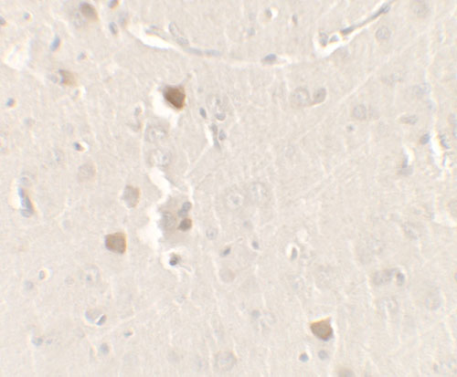 Immunohistochemistry of CISD2 in rat brain tissue with CISD2 antibody at 2.5 μg/ml.