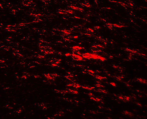 Immunofluorescence of CISD2 in rat brain tissue with CISD2 antibody at 20 μg/ml. |