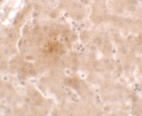 Immunohistochemistry of APO-E inhuman liver tissue with APO-E antibody at 2.5 μg/ml. |