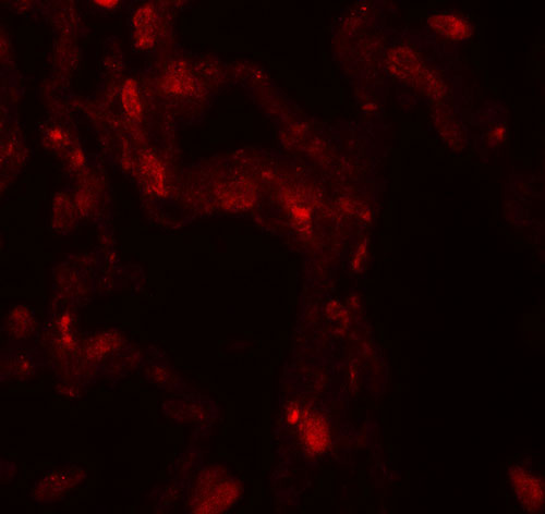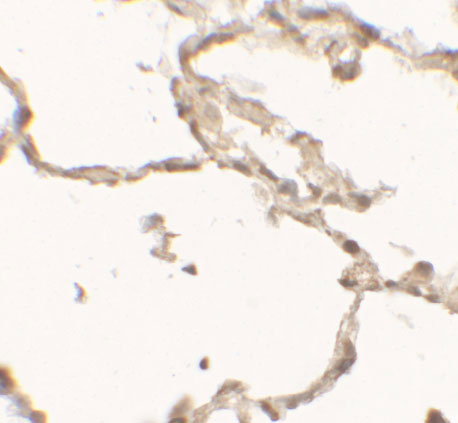 Immunofluorescence of DDC in human lung tissue with DDC antibody at 20 μg/mL. |