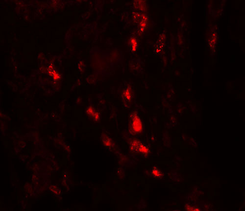 Immunofluorescence of ARSB in human lung tissue with ARSB antibody at 20 μg/mL. |