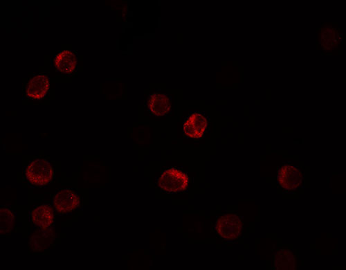 Immunofluorescence of IL-28B in HeLa cells with IL-28B antibody at 5 μg/mL. |