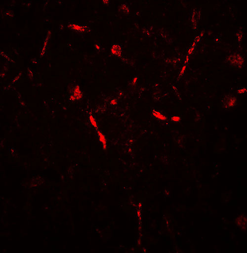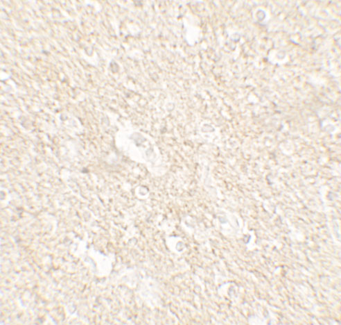 Immunofluorescence of APPBP2 in human brain tissue with APPBP2 antibody at 20 μg/mL. |