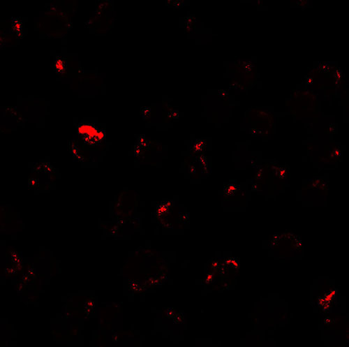 Immunofluorescence of MIB1 in A431 cells with MIB1 antibody at 20 μg/mL. |