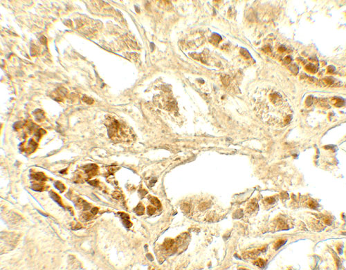 Immunohistochemistry of CASR in human kidney tissue with CASR antibody at 5 μg/mL.