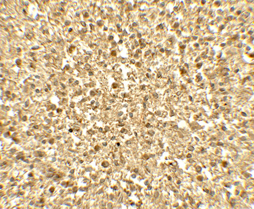 Immunohistochemistry of SREBF1 in human spleen tissue with SREBF1 antibody at 5 μg/mL.