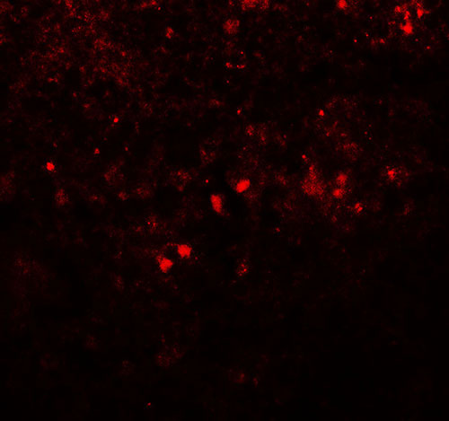 Immunofluorescence of SREBF1 in human spleen tissue with SREBF1 antibody at 20 μg/mL. |