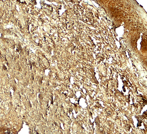 Immunofluorescence of PIK3R4 in human tonsil tissue with PIK3R4 antibody at 20 μg/ml. |
