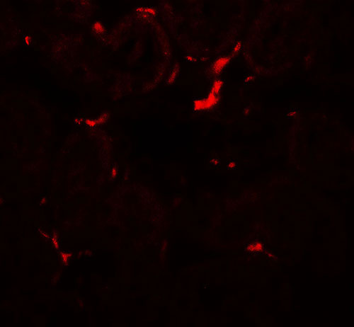 Immunohistochemistry of VEZT in rat kidney tissue with VEZT antibody at 5 μg/ml.