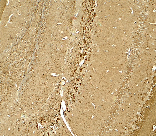 Immunohistochemistry of NINJ1 in mouse brain tissue with NINJ1 antibody at 5 μg/ml.