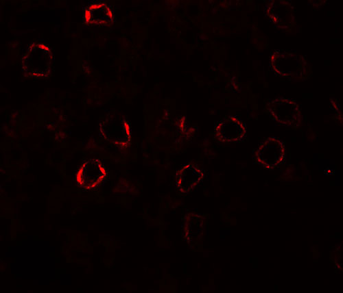 Immunofluorescence of KIRREL3 in mouse kidney tissue with KIRREL3 antibody at 20 μg/ml. |