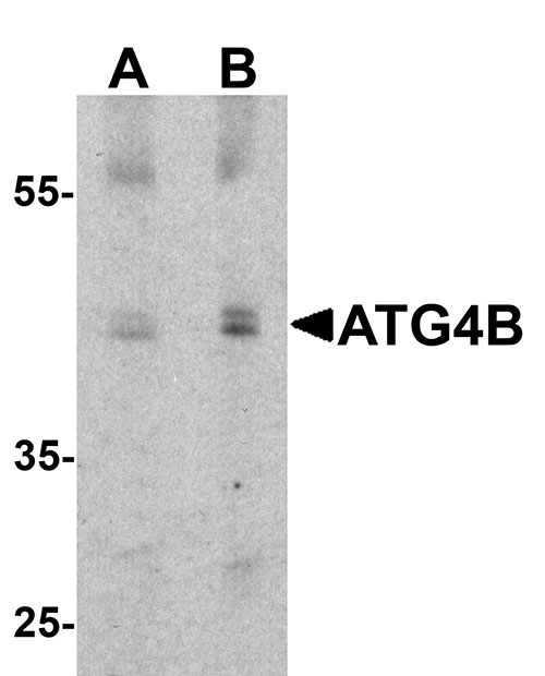 ATG4B; ATG4B antibody is human, mouse and rat reactive. At least two isoforms of ATG4B are known to exist; this antibody will detect only the larger isoform. ATG4B is predicted to not cross-react with other ATG4 proteins.