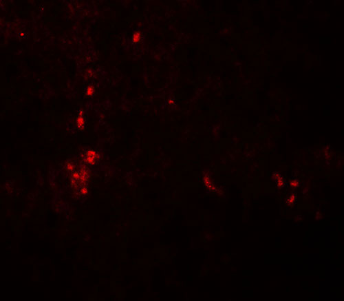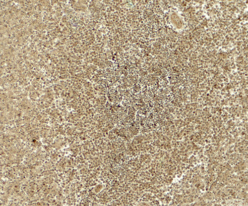 Immunofluorescence of ATG4B in human spleen tissue with ATG4B antibody at 20 μg/ml. |