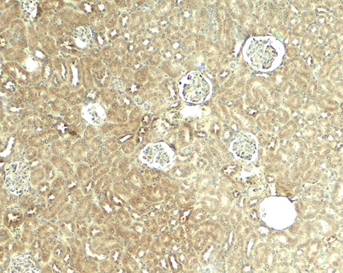 Immunohistochemistry of GLIS2 in mouse kidney tissue with GLIS2 antibody at 5 μg/ml. |